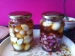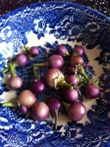Having collected a handful of purple rainbow chillies, I wanted to do something with them. Whilst a single solitary one, made it into a courgette chutney ( http://www.rivercottage.net/users/Pam%20the%20Jam/blog/1281015134-courgette-aid-and-jam-fest/ ). I wanted to make further use of the rest. The chillies are small, berry like. And quite full of seeds. There are additional chillies in the wendy. I have been impatient, and harvested a few non green Nigels, as well as some green frauzauber, These are a lovely lime colour. I have yet to ascertain, whether this is a sweet or a spicy chilli. it went in regardless.