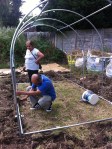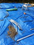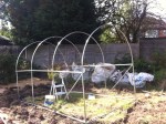 Today was D-day.The day scheduled for the raising of the poly. It would be done today, that was the mission. Mama and H started fairly early. Half a lie in, and down to the plot with the box. All the bits were taken out. Mama went to great pains-after the arch debacle-to count out each of the components. That we had enough, the right ones. Make sure.