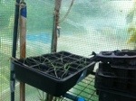 These are a second sowing of leeks. Onions have never been sown before, so are an experiment. Stashed in the Wendy house, I am hoping to sow more onions. Not many have come through; which is disappointing.