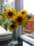 There have been episodes this week of mama nature having a bit of wind and throwing a few gusts around. That had meant that a few sunflowers were a bit askew, and had to be righted. Sadly, one batch found themselves keeled over and the stem had split in two. It seemed kinder to take it down. Mama H harvested a few of the blooms and it’s sat on her window sill.