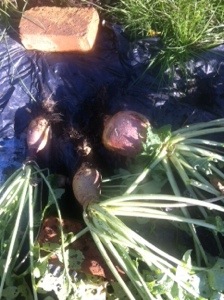 Huge football sized ruby swede, harvested today. Most likely to be curried by the mother.