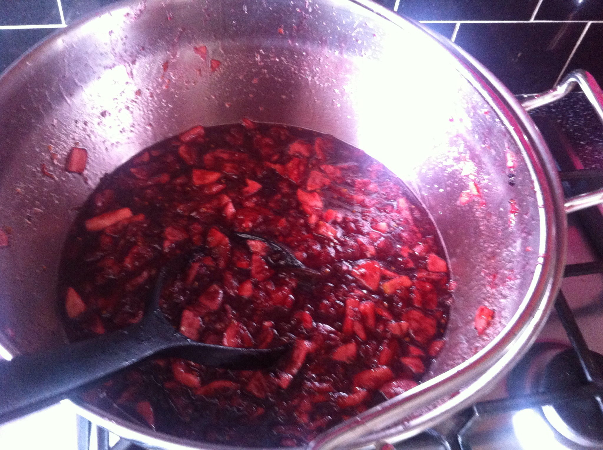 Experimenting with the jam pan again. This time it’s apple and plum. With additions of ginger and black cardomom. I did think at one stage that it was wasn’t very pink. So i did add some blackberries.