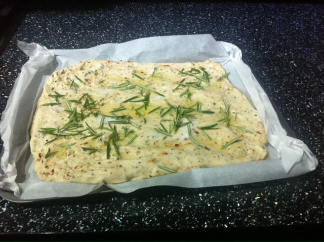 So using this focaccia recipe http://www.bbc.co.uk/food/recipes/focaccia_08389 I have tried to see what happens. This recipe has been adapted. I have added red chilli flakes, onion seeds, cumin and carom seeds. As well as Mum’s home grown rosemary, both in the mixture and on top as it bakes.