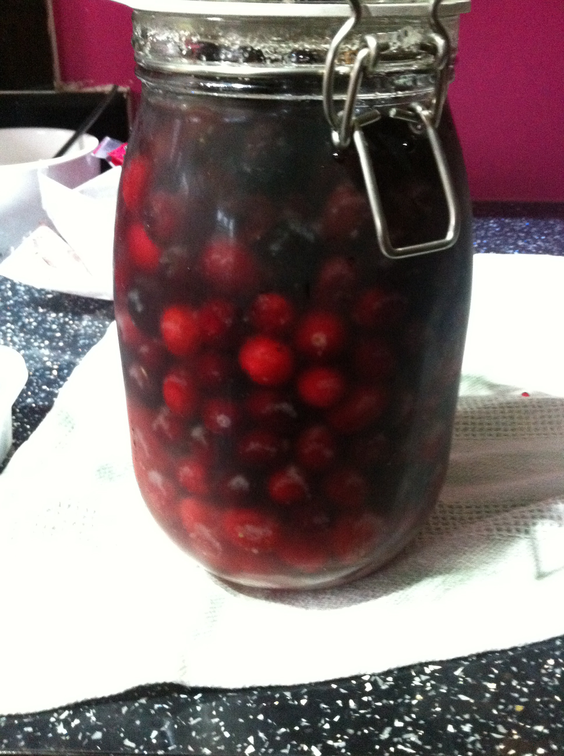 The last batch, I promise. For the festive season I have steeped raspberries, cranberries and cherries in light rum. Added to them was cinnamon, star anaise, cloves and black cardomon and white sugar. Shall now leave for a while.