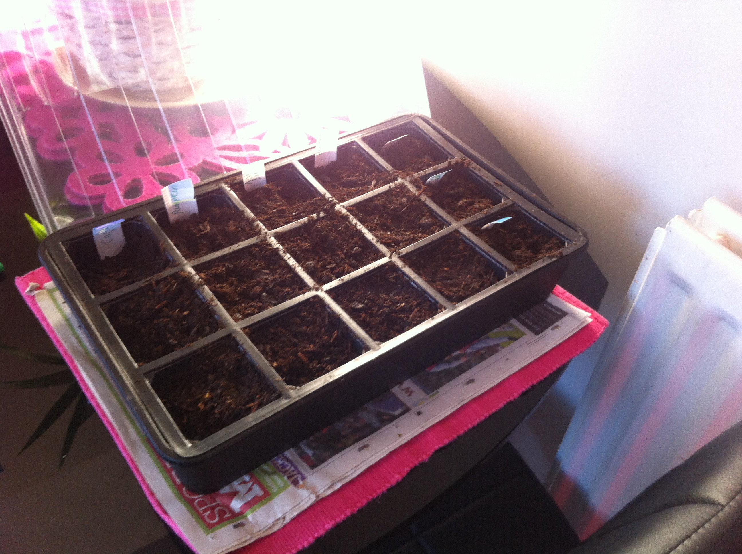 Compost was placed into the modules, moistened and kept at room temperature for a while to warm up. There are five seeds per module compartment for most of the above seeds. This was all then placed into an unheated propogator, secured with elastic bands so nothing escapes. Placed then in a warm place.