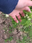 There over forty canes sunk on the plot. Thirty two of them, are the typical pink ones, the others are yellow. This particular variety, is the fall gold autumnal raspberries that were sunk early this spring. I was not expecting to see an awful lot a this stage. Even then, I had expected the pink all season raspberries to be further on compared to where they are. Not many are green and leafy; they are largely still brown and sticky. There are still very few green runners visible.