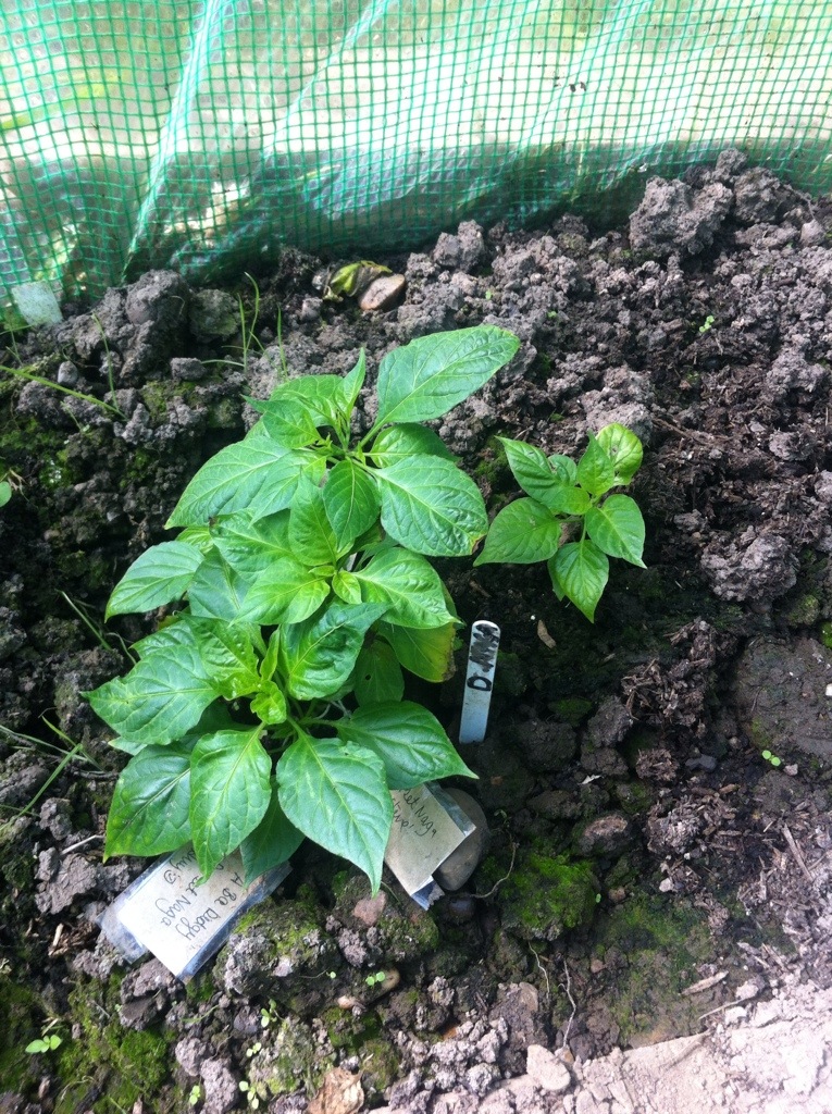 There is varying levels of progress with the chillies in the poly tunnel.