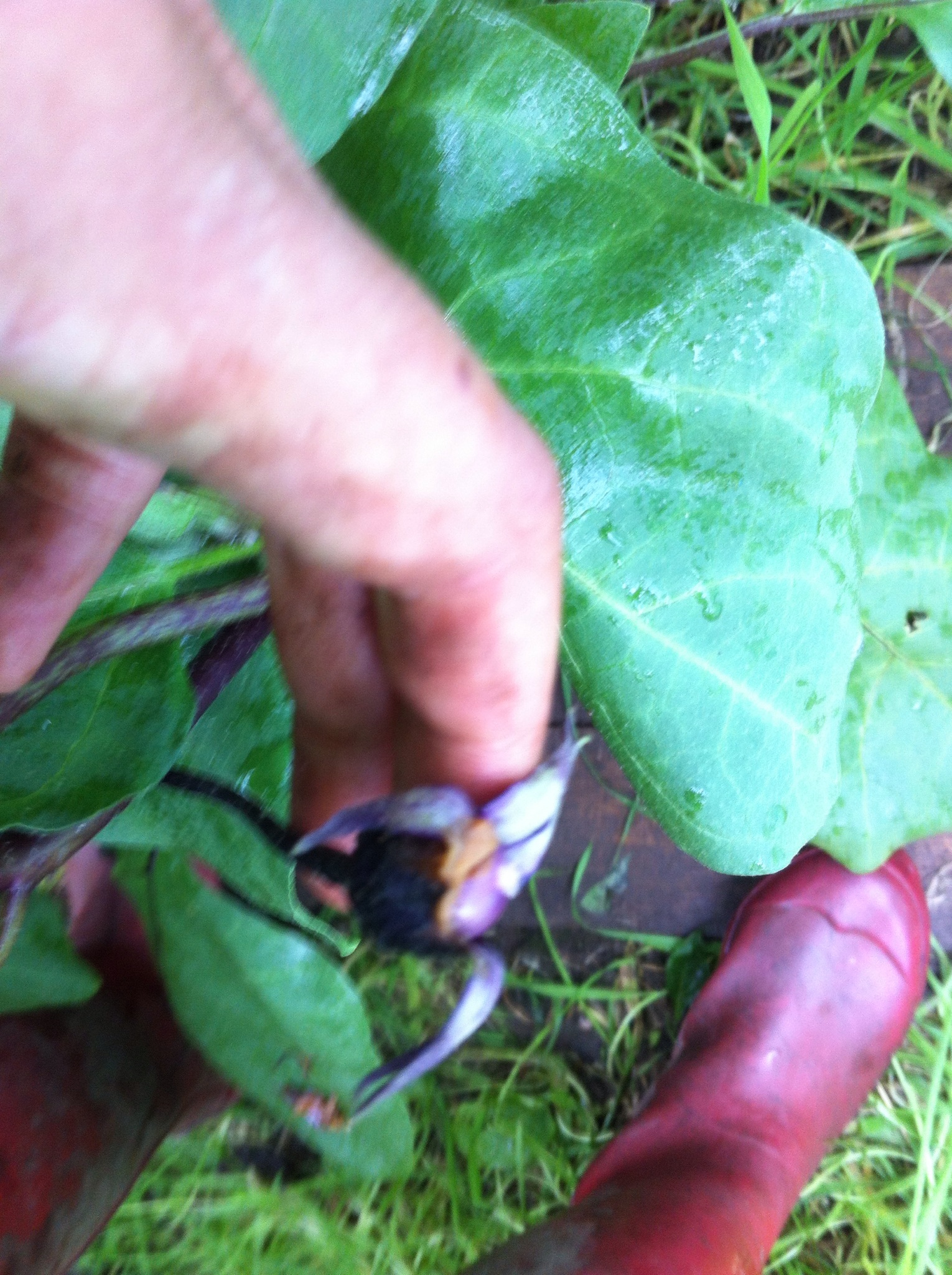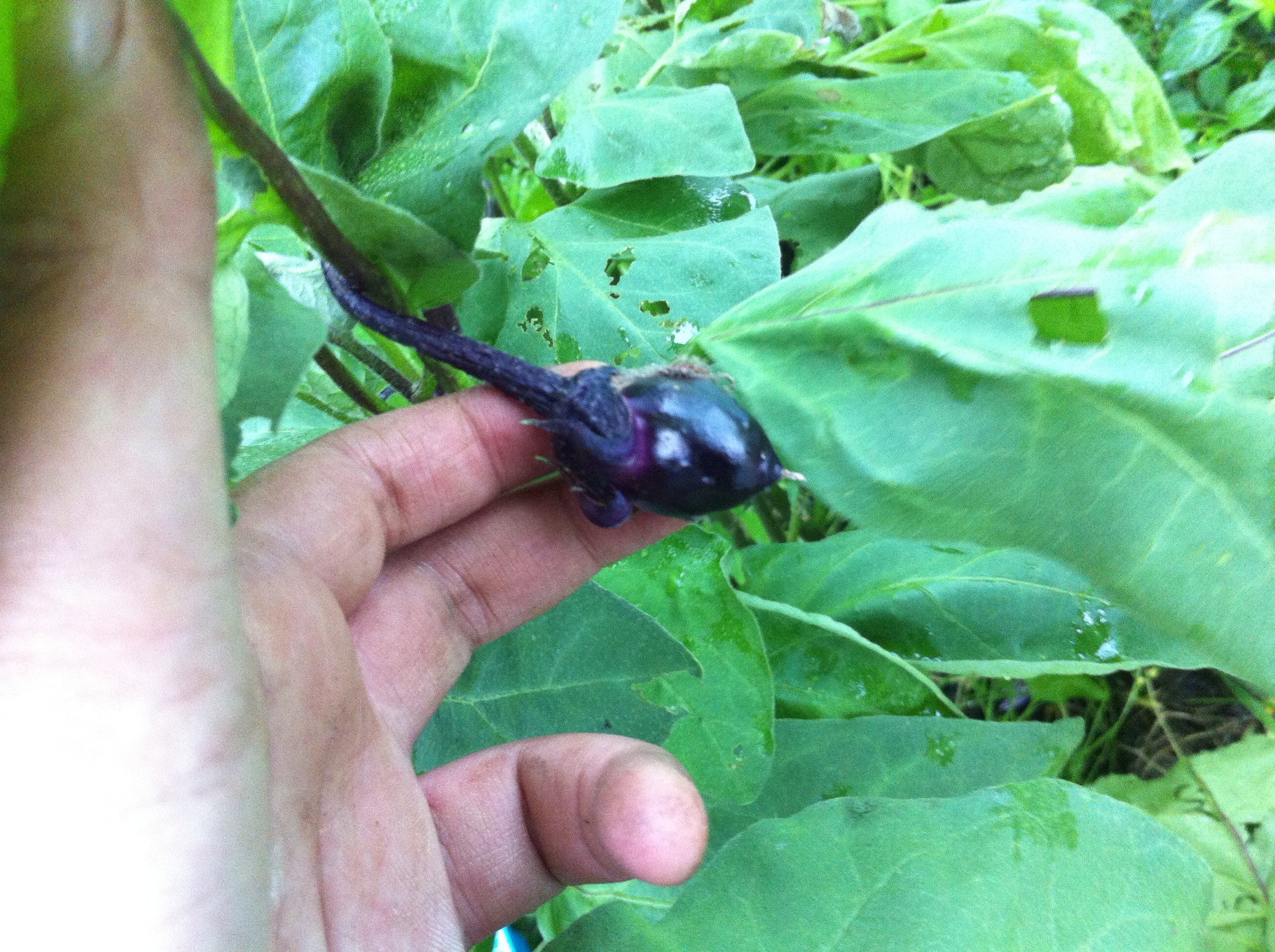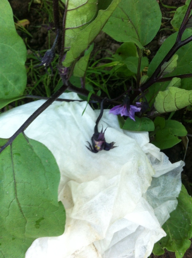 The jokes are all over. We have two aubergines. They are little and large, streaky down the sides but shiny in places. But they now be in mama’s kitchen. They were sapping their respective plants and flowers were dropping off.
