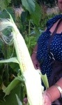 Harvested two cobs, that appeared to have brown tassles. Was a bit hasty, I think. One cob has formed lovely little bits; the other is fairly inedible and only just forming! There was milkyness in the one that is okay. Will keep an eye on rest. Have a few more forming. A valuable lesson learned. Tassles need to be brown and crispy!