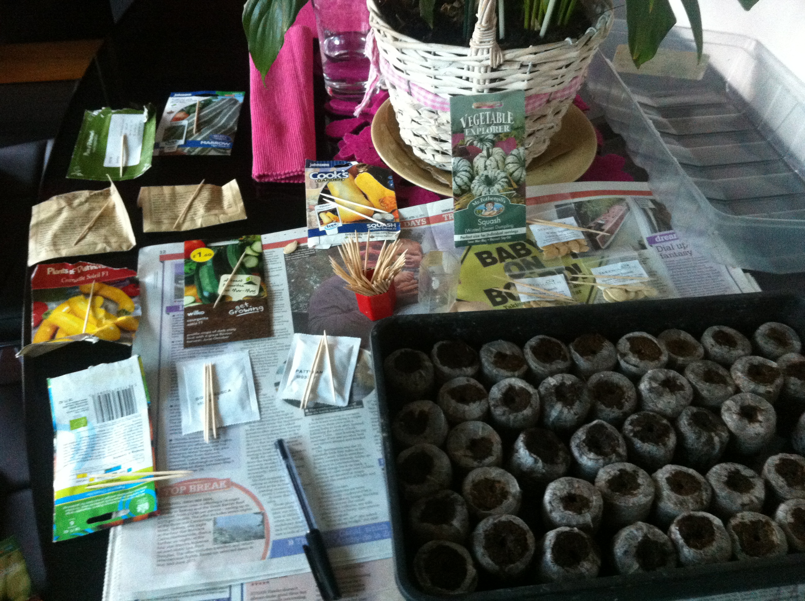 This rather erratic weather does nothing to improve an already low level of allotmenteering mojo. Already feeling as though I am behind, hearing the hail come down as you return from the allotment  is not exactly encouraging or inspiring. Today was pencilled in as the opportunity to take stock and sow an assortment of seeds. With the frost window in Birmingham open til the end of May, I made the decision to sow squashes. These grow quickly, require potting on if they become too large to soon and will eventually need hardening off before being plugged into the raised beds on the plot.