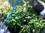 A few of the berries are starting to expand. I’m not quite sure as to how big they actually get, or how potent they might be. In the wendy house, the chillies and bells continue to be fed and watered. It is sad that to say that some of them have been a bit scorched by the sun. The Purple Beauty in particular. However, there are a few walnut sized sweet peppers being formed, and a singular, solitary thin chilli that may well be a cayenne or a long thai.